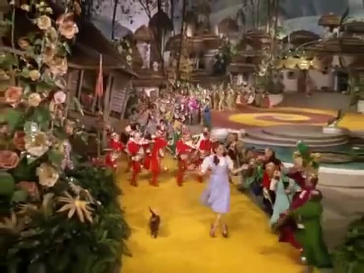 노래 제목인 노란 벽돌길은 영화 오즈의 마법사에 나오는 길입니다. 오즈의 마법사에서 도로시는 에메랄드시티로 향하는 노란벽돌길을 따라 가면서 허수아비와 사자와 양철 나뭇꾼을 만납니다.